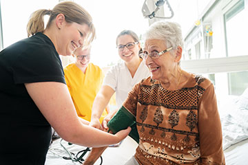 Pflege bedeutet Kommunikation und Umgang mit anderen Menschen. Deshalb baust Du in Deiner praktischen Ausbildung Beziehungen zu vielen Menschen auf, informierst und hilfst mit bei Diagnostik und Therapie. Du bist verantwortlich für die selbstständige und prozessorientierte Pflege von Menschen in unterschiedlichen Lebenslagen. Deine Aufgaben sind darüber hinaus so vielfältig, wie die Menschen, um die Du Dich kümmerst. Denn Du hilfst ihnen jeden Tag aufs Neue. Hier ein nettes Gespräch, da ein Lächeln. Du bekommst auf jeden Fall eine ganze Menge Dankbarkeit und Wertschätzung entgegengebracht. Denn Du wirst wirklich gebraucht!